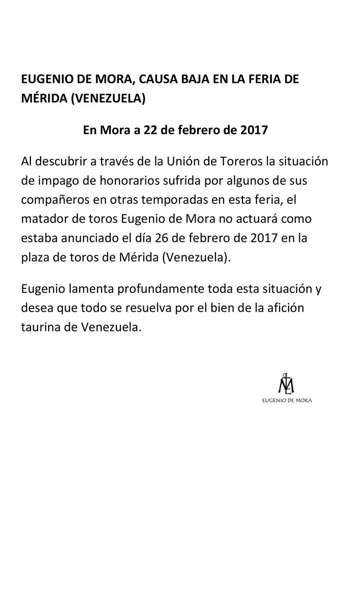 Nota de prensa de Eugenio de Mora en la mañana de hoy.